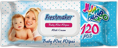 FRESHMAKER Салфетки влажные детские 120шт В горошек