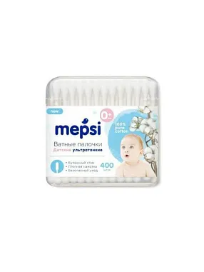 Mepsi Ватные палочки 400шт Детские ультратонкие