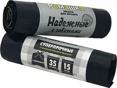 Ромашка Мешки д/мусора Надежные с завязками Черные 35л 30шт