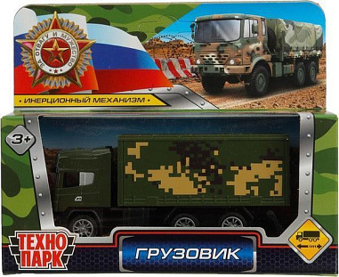 Машина металл ГРУЗОВИК ,11см,подвиж,дет,инерция,камуф, кор. Технопарк в кор 2*144шт