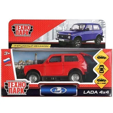 859 ₽/шт Машина металл LADА 4*4 2131 12см,двери,багаж,инерц,красный,кор. Технопарк в кор.2*36шт В корзину мало