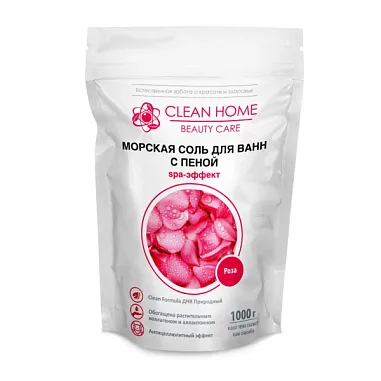 Clean Home Beauty Care Соль для ванн с пеной 1000г Spa-эффект Роза